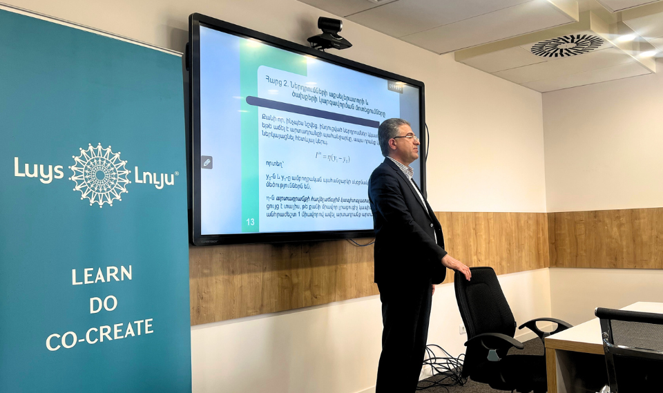 «Մակրոտնտեսագիտություն» արտագնա դասն անցկացրեց «ԼՈՒՅՍ» հիմնադրամի փորձագետ, դասախոս, դոցենտ Կարեն Եղոյանը։